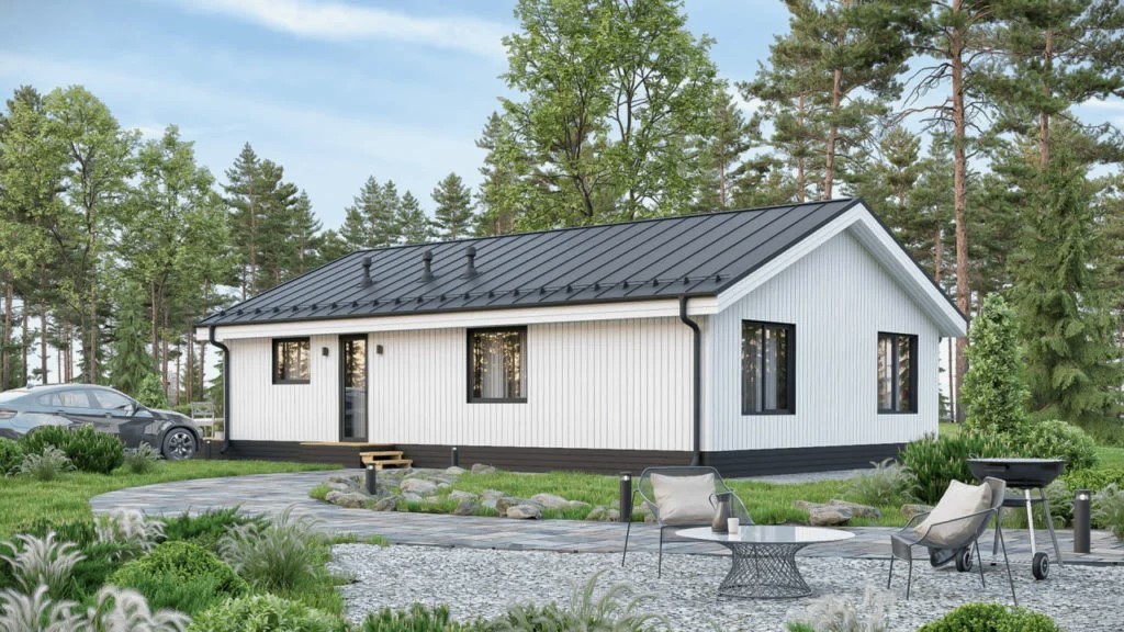 Дом одноэтажный каркасный Синди 96м2 с террасой 16м2