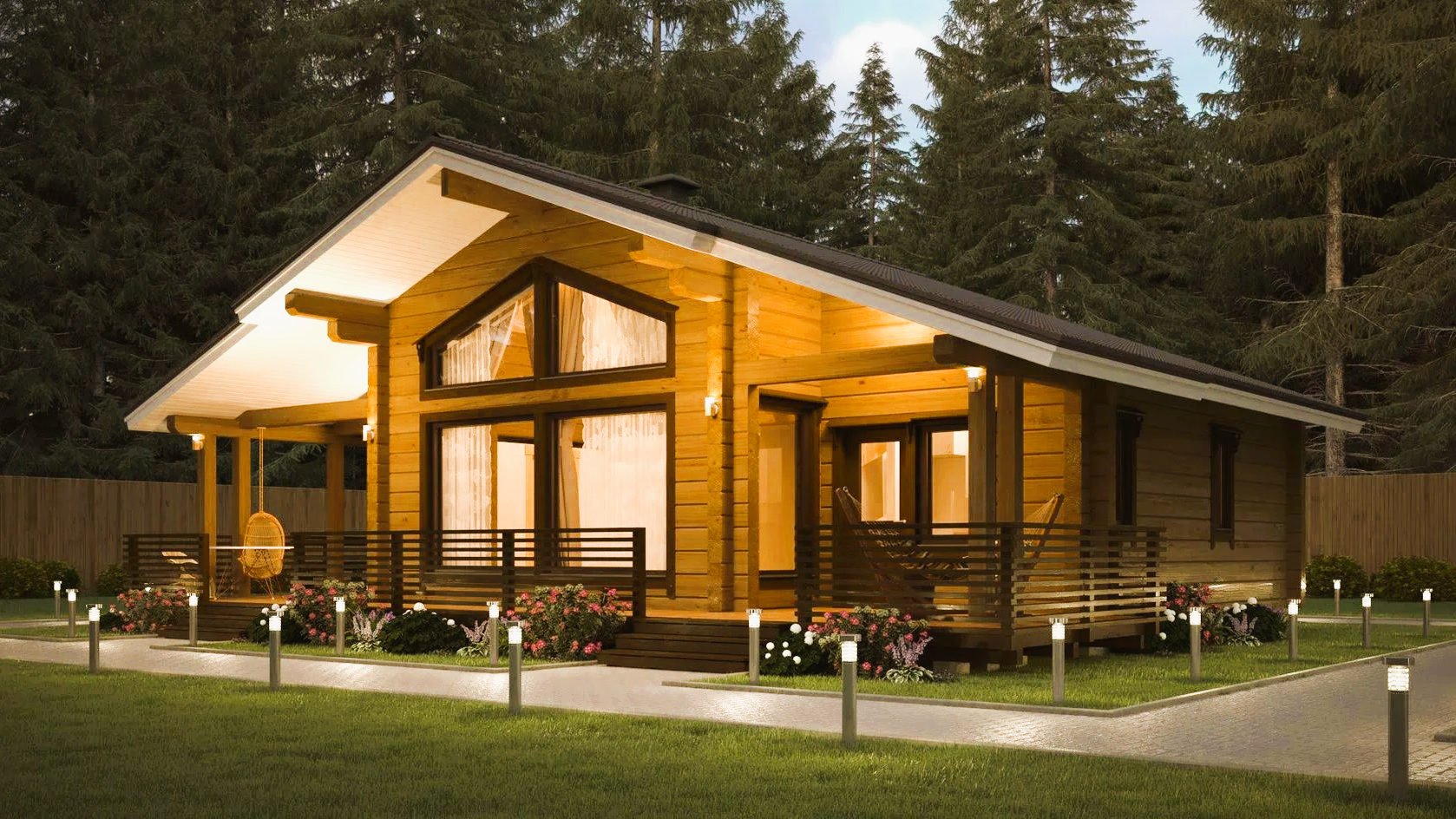 Дом одноэтажный из клееного бруса Скад 117м2 с сауной