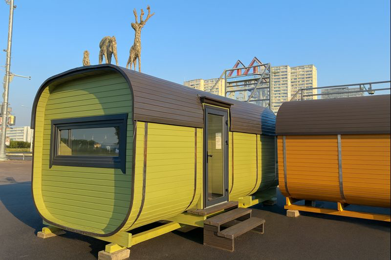 Дополнительно: Бак для воды на 50л. Комплект электрики и освещения. Входная дверь металлическая с порошковым покрытием. Дверь в парную и помывочную стеклянные. Двухъярусные лежаки из липы/осины в парной с угловым полоком. Форточка в парной 30х30. Столик в комнате отдыха. Окно в комнате отдыха 60х60. 1 скамейка и трапик в помывочной. Рундук 120см для вещей в комнате отдыха.